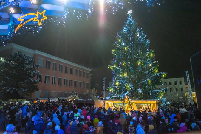V sobotu si od ranních hodin mohli dospělí i děti zabruslit na městském kluzišti, které mělo na náměstí Míru svou premiéru. V odpoledních hodinách náměstí ožilo adventními trhy a kulturním programem. Vystoupil Žesťový sextet místní ZUŠ, kapela Bylo nás 5 a nemohly chybět děti z MŠ. V 17 hod. se slavnostně rozsvítil 14 m vysoký vánoční strom.